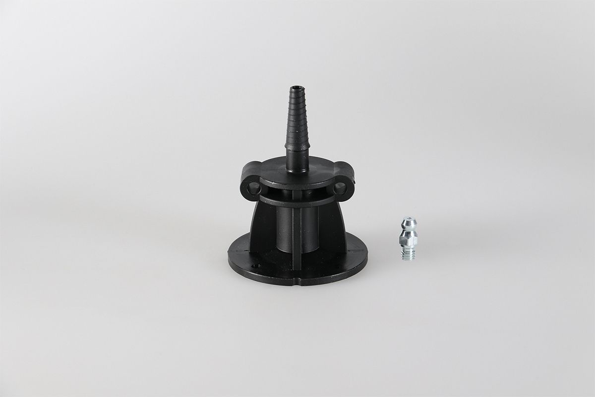 black, internal thread M8, insertion sleeves for nail packer holder, red protective plug for venting side, HP round head nipple M8 (separately enclosed)