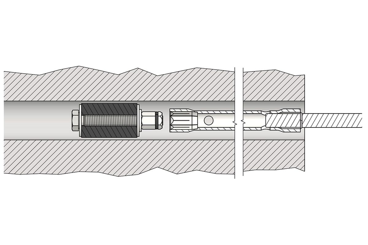• The blind packer forms a secure detachable connection with the socket wrench. Already inserted blind packers can be unscrewed and retightened.